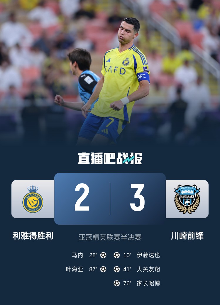 j9九游会老哥俱乐部交流05月01日讯 亚冠半决赛川崎前锋3-2击败利雅得胜利,闯入亚冠决赛将战西区第2吉达国民。